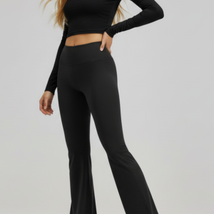 High-Waisted Yoga Pants: Slimming, streamlined fit in sleek black. Made from premium fabric for yoga, fitness, and casual wear. Comfort meets versatile style.