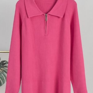Chic knitted pullover features a unique polo/turn-down collar. Versatile and comfortable, perfect for elevating your casual autumn and winter looks