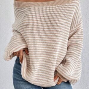 Embrace lazy fashion with this off-shoulder striped knit sweater. Featuring a drop shoulder design and long sleeves, it's perfect for cozy autumn and winter style.