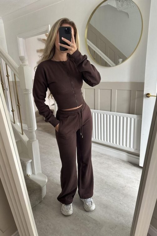 Fall/Winter Casual Set | Stay stylish & cozy with this matching zip-up cardigan and straight-leg pants. Perfect for everyday chic.