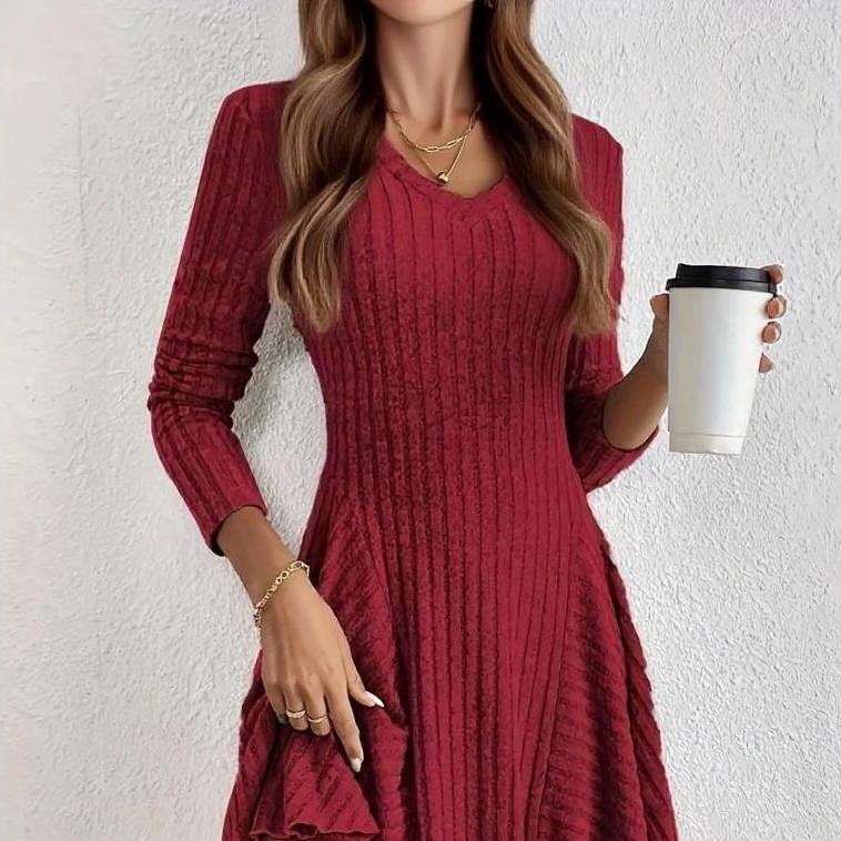 Dress Fashion Knitted A-Line Long Sleeve Dress for Women