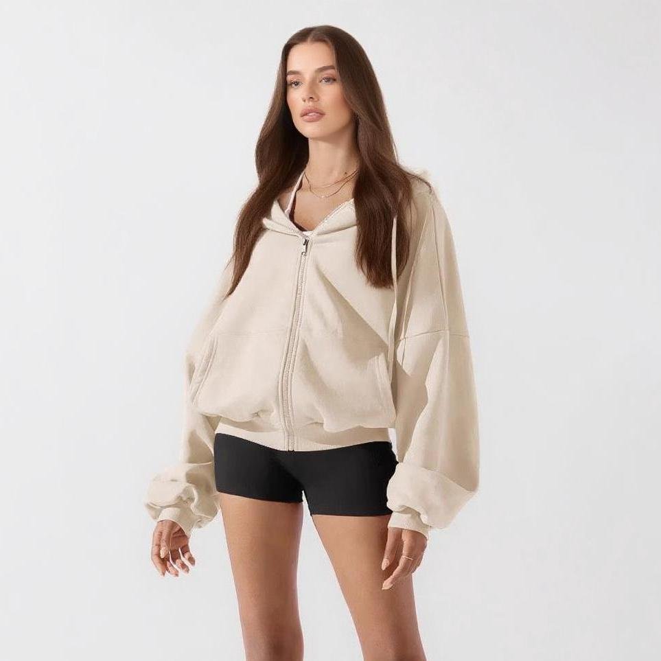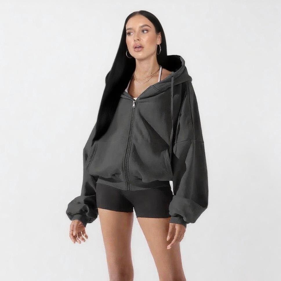 Women’s Hooded Sweatshirt: A 50cm-long, solid-color cardigan perfect for autumn/winter. Trendy yet casual, ideal for sports, outings, and everyday versatile comfort.