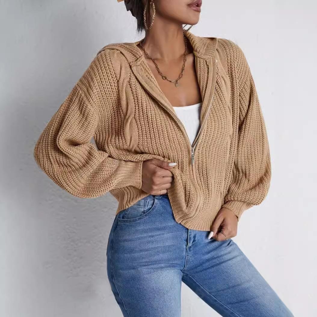 Women’s Hooded Cardigan Knitted Waffle Sweatshirt