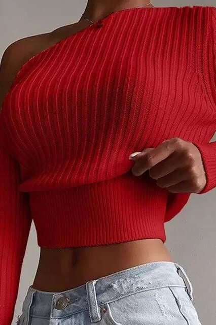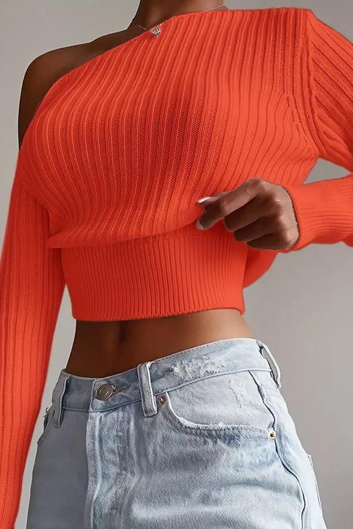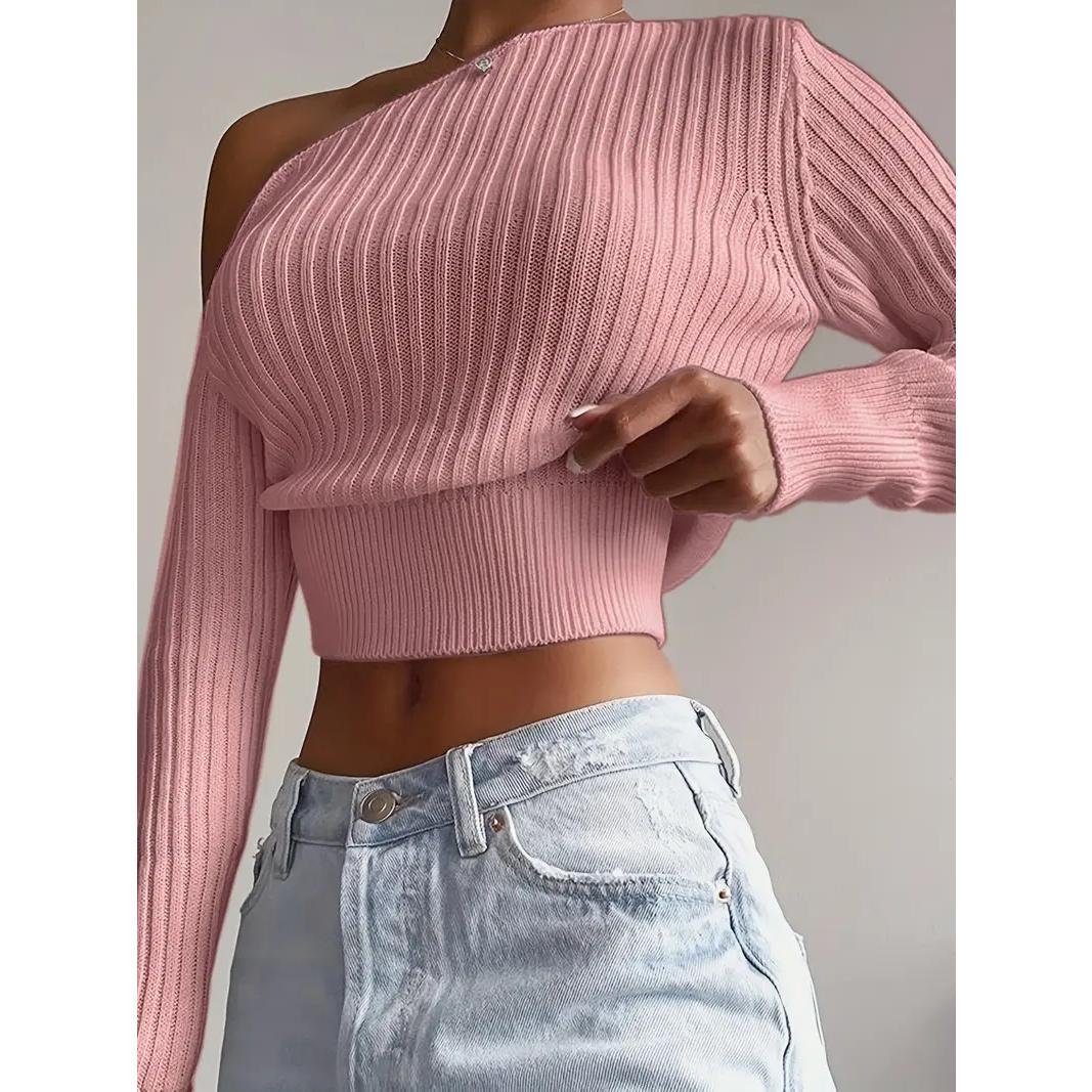 Solid color slim-fit knitted pullover for women. Features a flattering silhouette and versatile design, perfect for creating chic, streamlined everyday looks.